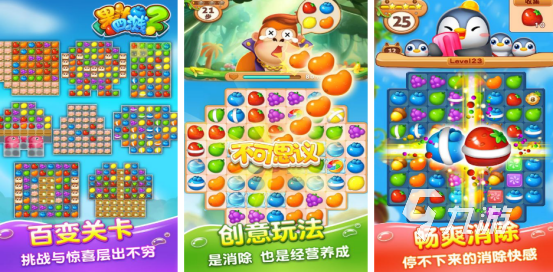 有百变关卡,享受无穷的乐趣和充满惊喜的特色挑战,非常别致的创意玩法,完成消除关卡之后获得极其丰厚的奖励,最终养成你的森林家园。将在这里享受超级爽快的消除模式,每次消除时,果汁都会直接四溅,这样的特色特效好玩到停不下来,将享受别样的消除快感与乐趣。