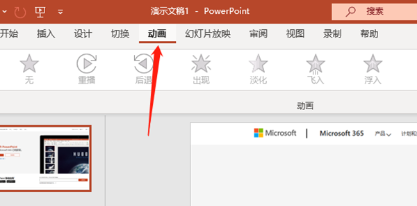 2、在顶部菜单栏中,点击“动画”选项卡,这将显示动画效果和转场效果的相关选项。