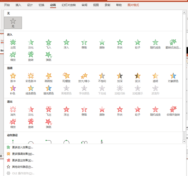 3、从多个预设的动画效果中选择一个,或者点击“更多动画”按钮以获取更多选项。选择您喜欢的动画效果并单击它。