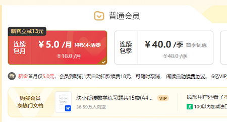 2、不过很多的软件都和文库有联合,能够以很低的价格购买到会员。