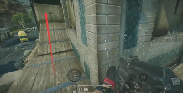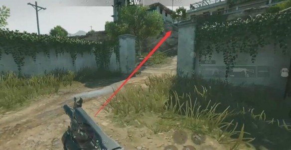 4、然后再去沿着地窖对面的斜坡上去,我们可以看到房子上的箭头向左边寻找,就可以在水池发现这个1。